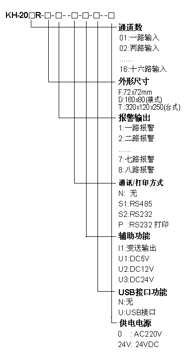 開口尺寸:F型72×72mm;兩個繼電器報警輸出;USB接口功能;220VAC供電電源