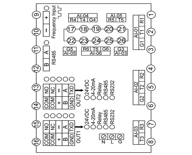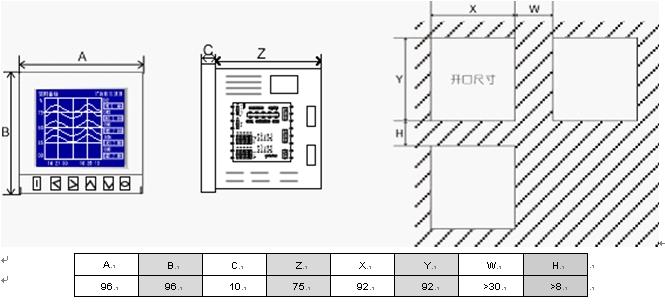 u 測量精度:±(0.2%FS+1)個字 u 電源電壓: AC85-240V、DC110V、DC24V u 顯 示:3.2寸TFT藍色320×240點陣 u 輸入規格: 熱電偶:K、S、N、E、J、 T、B、R、Wer526/523 熱電阻:PT100、CU50、 CU100 線性電壓:0-5V、1-5V、0- 10V、0-20mV...... 線性電流:4-20mA、0-10mA...... 脈沖輸入:訂貨時須知脈沖大 小 其它輸入:R、WRe526、 mV、其它 ◆ 輸出規格: 變送輸出:4-20mA、0- 10V......(最多2路) 繼 電 器:R2A、R2B、R2C(最多2路) 饋 電:U1/U2/U3(最多2 路) 打印/通訊接口:S1、S2、P USB接口:U u 記錄時間: 記錄間隔可任意設1、2、3、4、5、6、7、8……秒。 八筆記錄:360天 (記錄間隔1分鐘) u 斷電保護時間: 用FLASH MEMORY保存設置參數和歷史數據,斷電后永久保存,采用硬件時鐘,掉電后也能準確運行。 u 環境溫度:-20-50℃ ◆ 環境濕度:0-85%RH ◆ 外形尺寸:96×96×85mm ◆ 安裝尺寸:92×92×75mm |